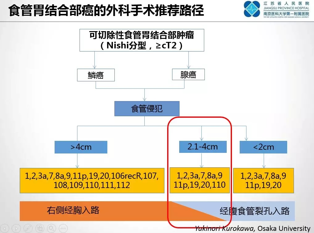 图1. 食管胃结合部癌的外科手术推荐路径