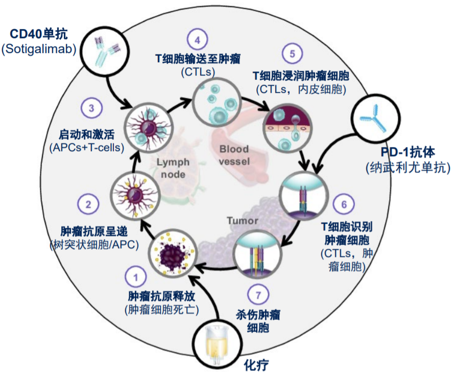 图1、Sotigalimab+化疗±纳武利尤单抗可能的作用机制