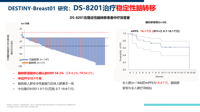 而正在进行的DESTINY-Breast12研究则探讨T-DXd在伴/不伴脑转移人群中的疗效,也让我们更加期待T-Dxd在大样本人群中进一步论证其对乳腺癌脑转移患者的疗效。