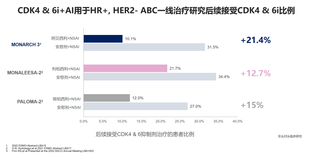 [1]Goetz MP, Toi M, Huober J, et, al. MONARCH 3: Interim overall survival (OS) results of abemaciclib plus a nonsteroidal aromatase inhibitor (NSAI) in patients (pts) with HR+, HER2- advanced breast cancer (ABC). Ann Oncol. 2022;33(S7):LBA15.