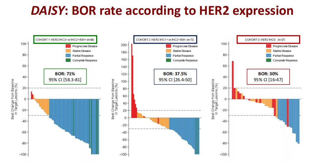 △DAISY研究中不同HER2水平队列,对T-DXd的治疗反应也不同